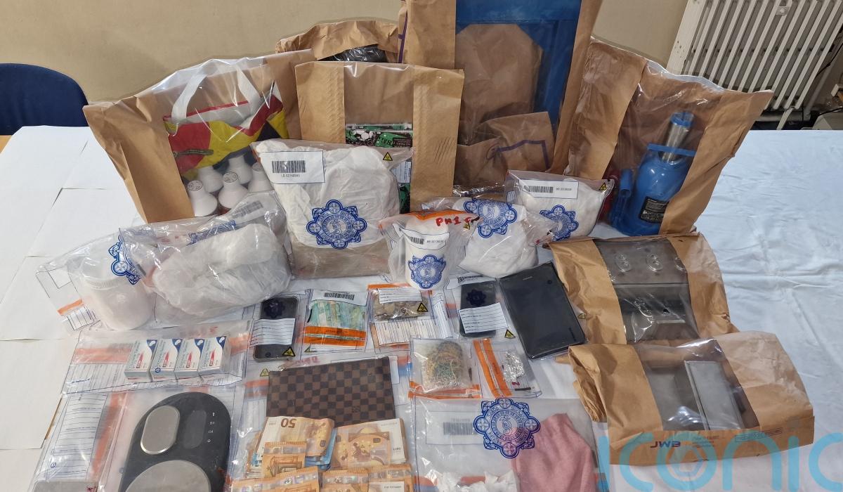 Drug paraphernalia including a hydraulic press and weighing scales was also found, as well as 6,000 euro in cash and a small quantity of ammunition.