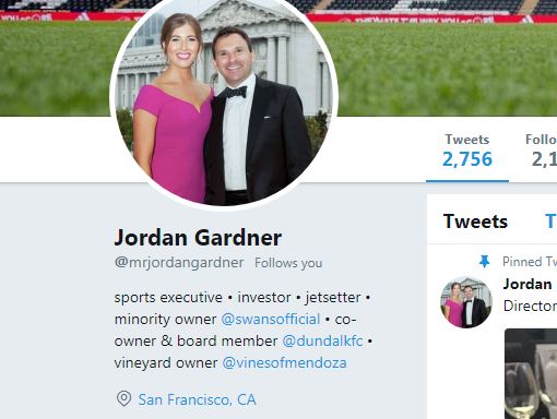 Jordan Gardner - one of the men believed to be backing the takeover - has updated his twitter bio, stating that he's the co-owner and board member of Dundalk FC
