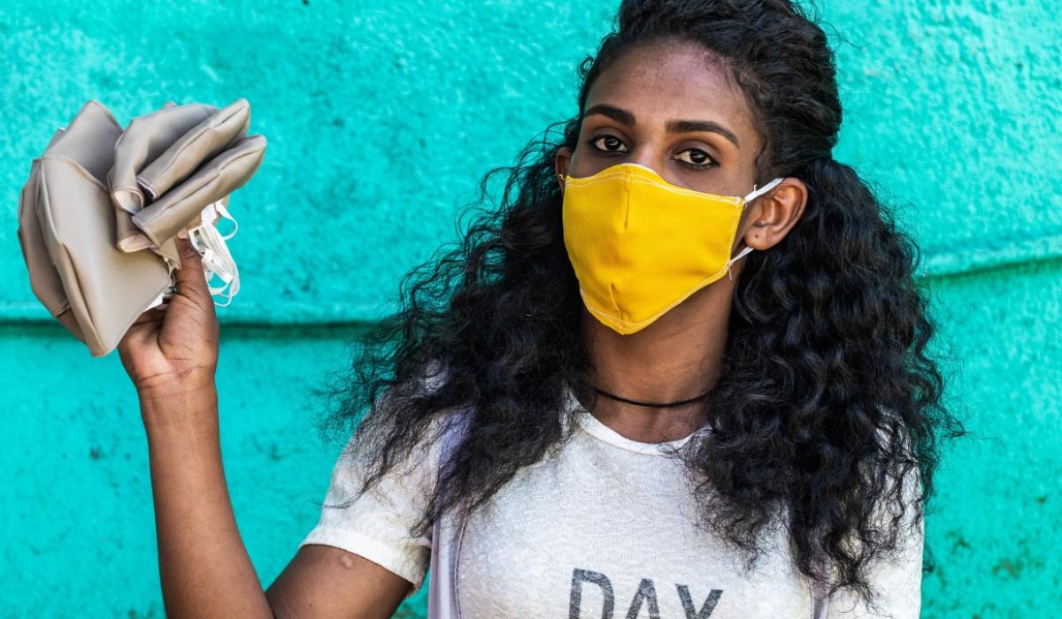 Wubit is earning an income sewing face masks while at the same time helping the fight against Covid in Ethiopia. Photo: Barnaby Skinner