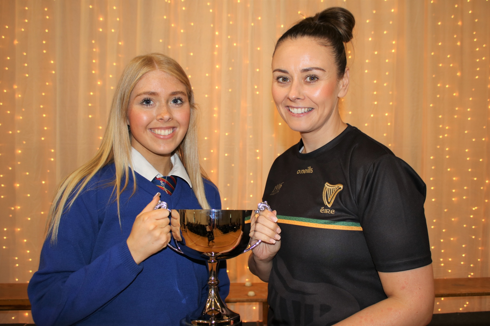 Below: Elizabeth McNulty presents The Senior Physical Education Award to Grainne Moran