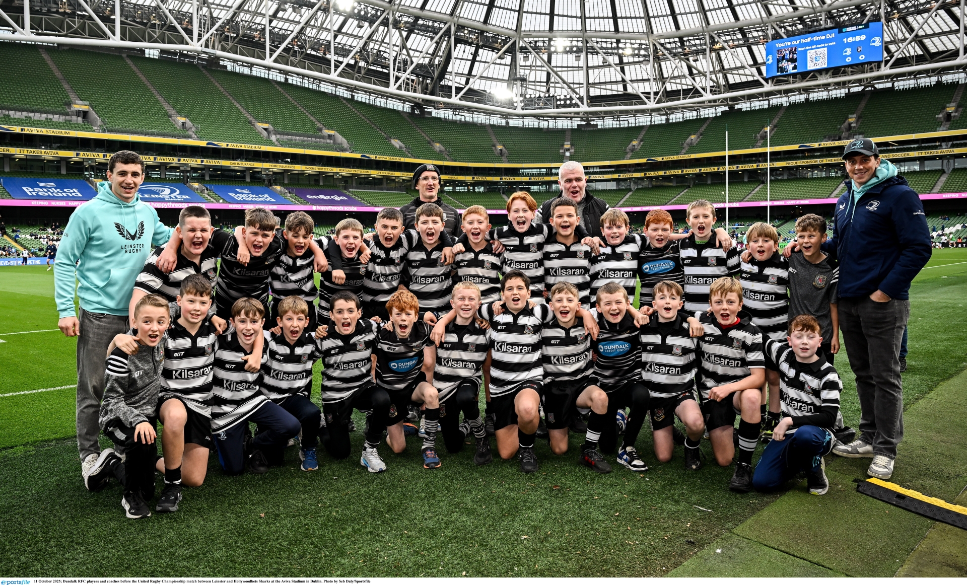 Dundalk Rugby Football Club took part in the Bank of Ireland half-time minis match between Dundalk RFC and St Mary's College RFC at half-time in the United Rugby Championship match between Leinster and Hollywoodbets Sharks at the Aviva Stadium last weekend.