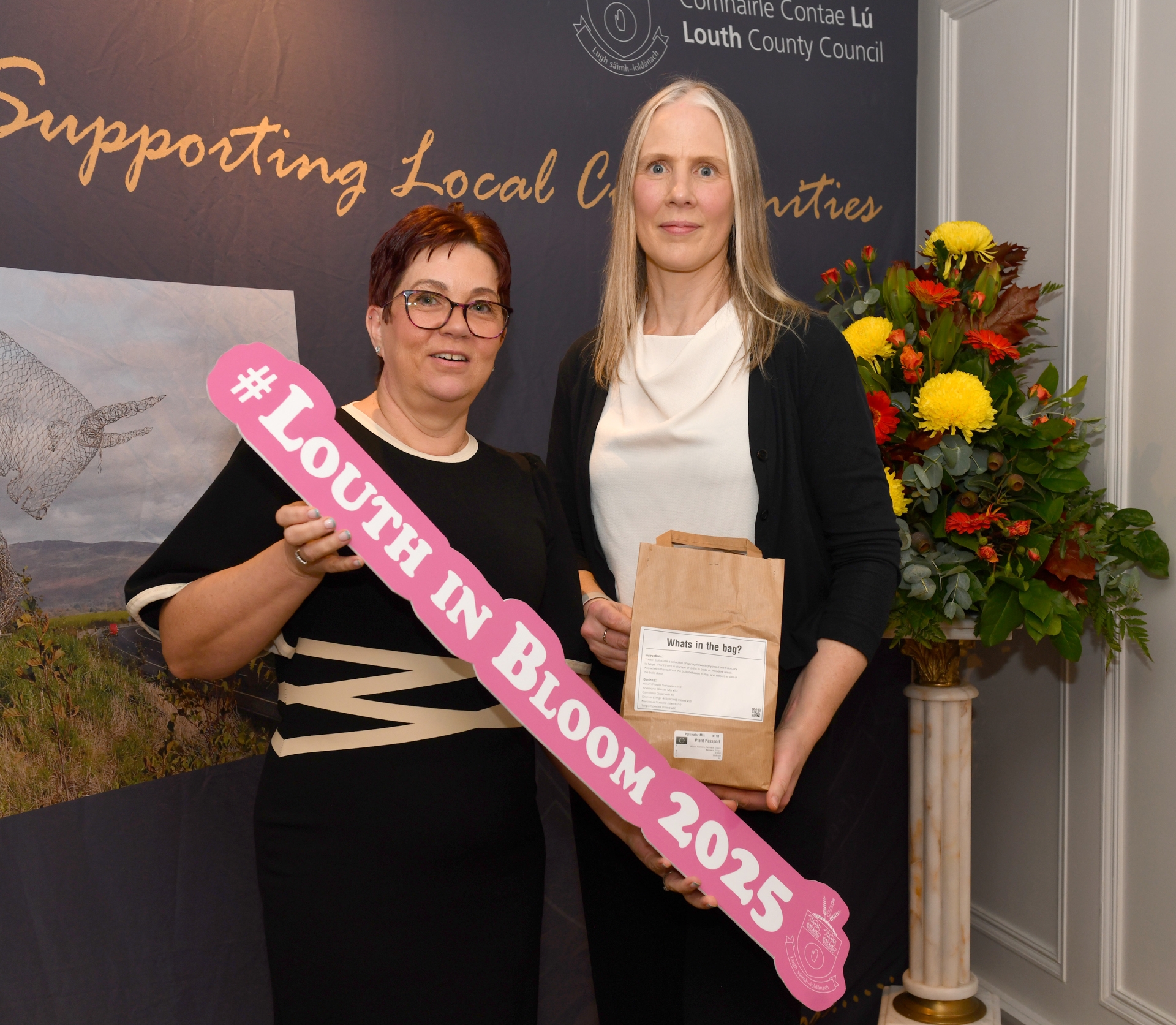 Clare O'Hagan and Julie McCann, Omeath Tidy Towns winners in the Best Tidy Towns Sustainable Project at the Louth in Bloom awards ceremony held in Bellingham Castle. Photo by Ken Finegan/Newspics Photography