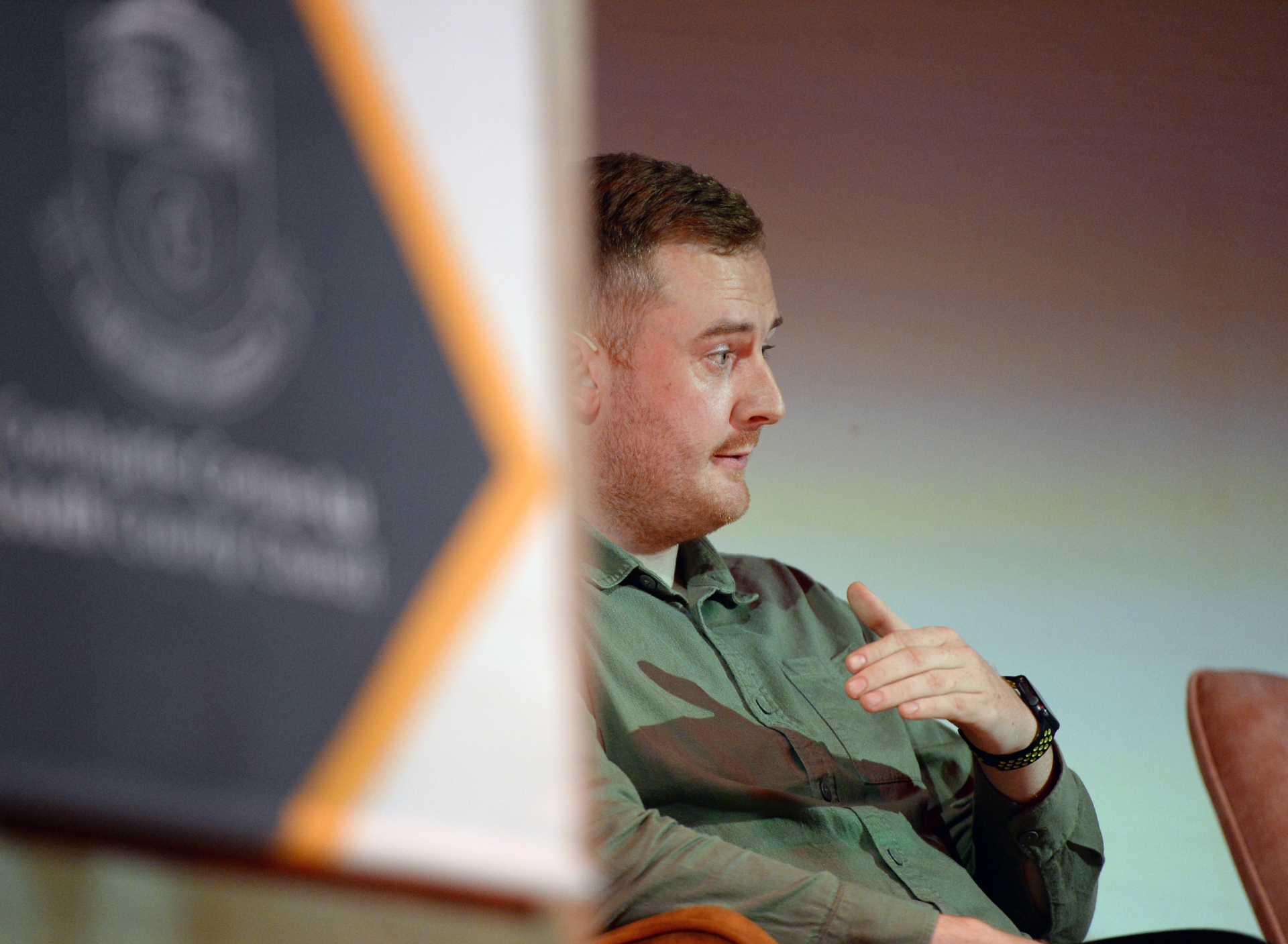Louth LGFA team coach Jack McNamee joins a panel discussion hosted by sports commentator and television presenter Marty Morrissey at a Civic Reception honouring the sporting achievements of the three county teams during the 2025 Gaelic football season.