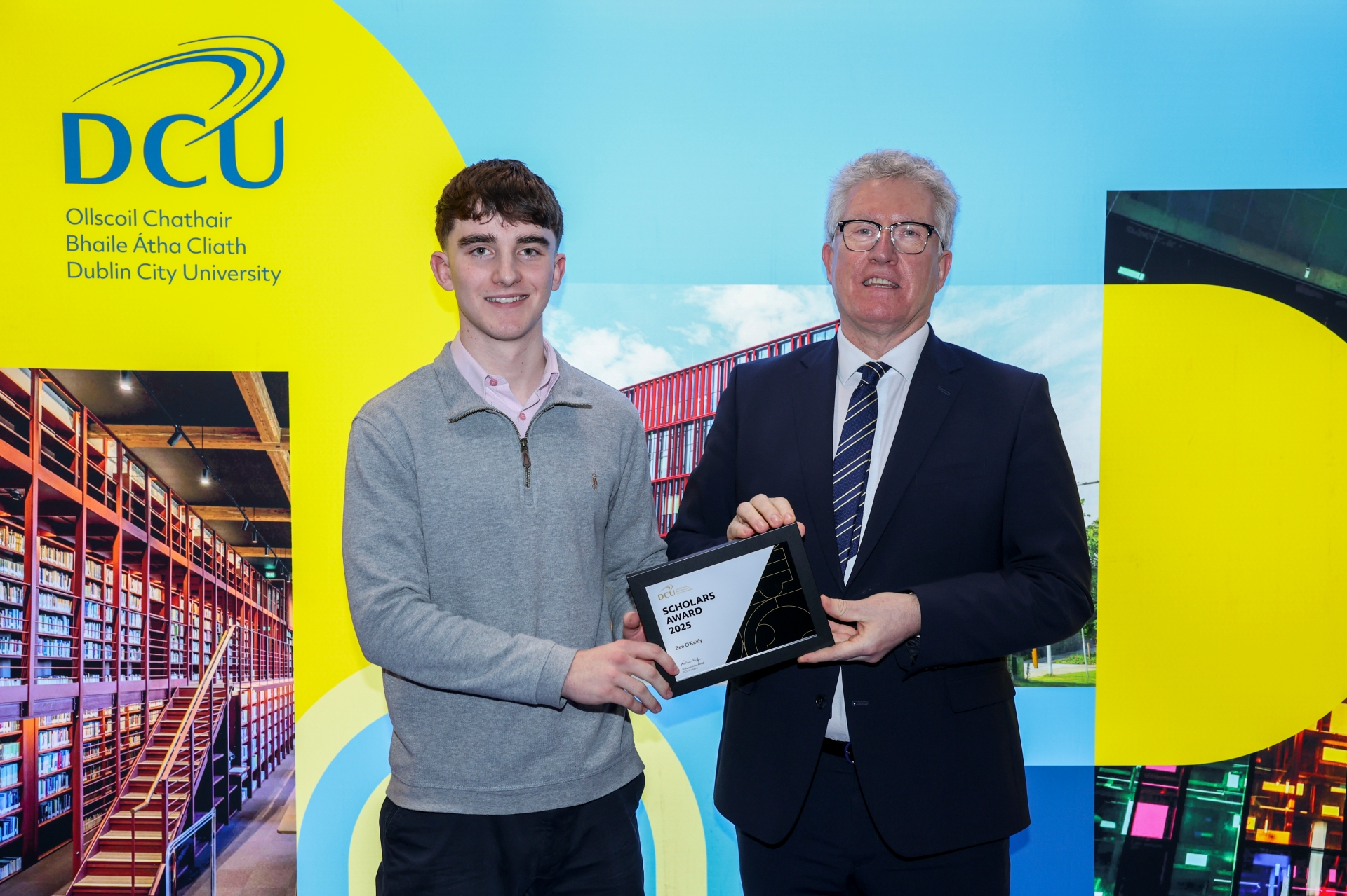 Ben O'Reilly, St. Mary's Diocesan School, Beamore Road, Drogheda with DCU President, Professor Dáire Keogh. Ben O'Reilly is studying for a Bachelor of Arts in Global Business (Canada) at Dublin City University.