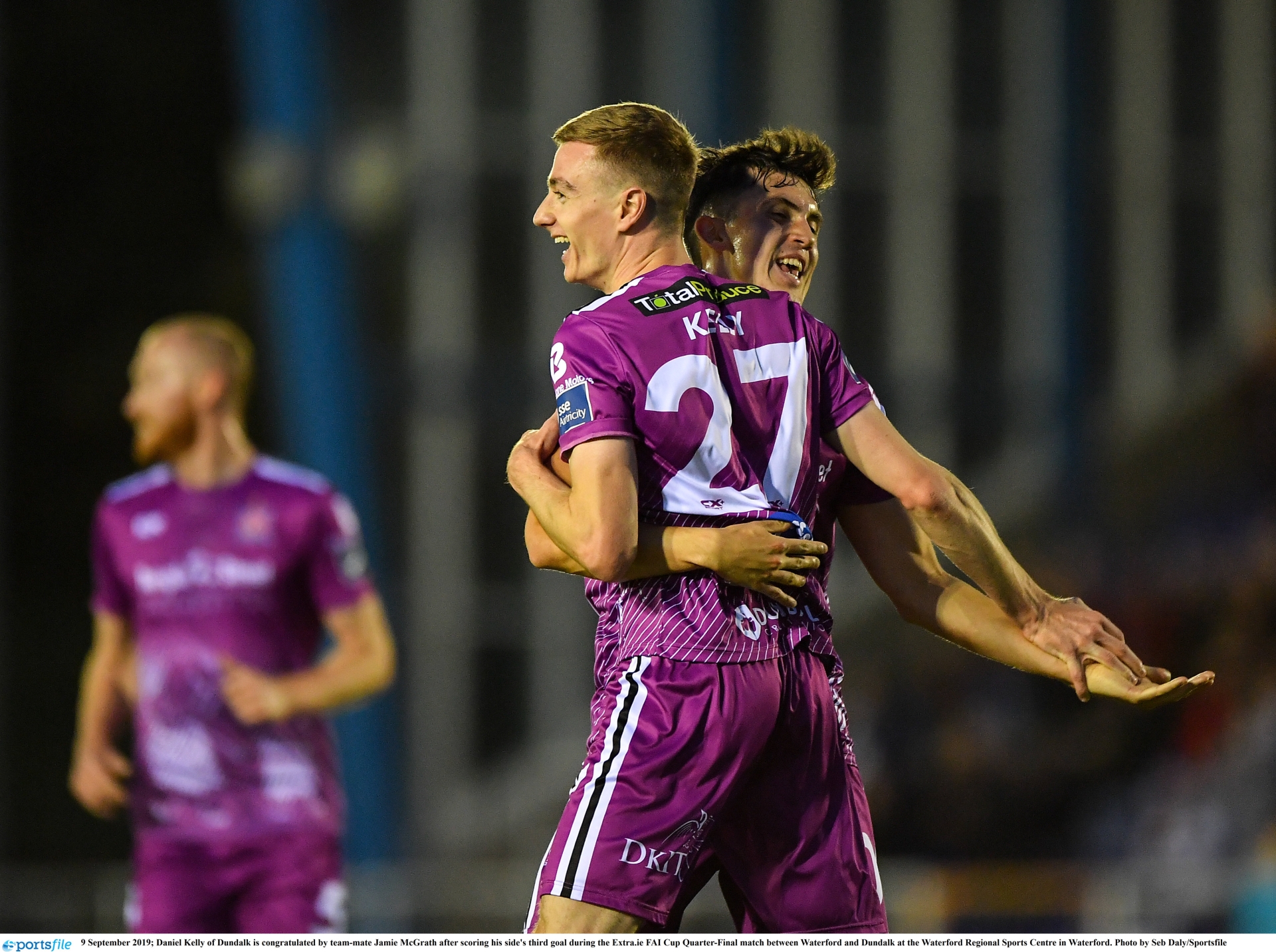 Daniel Kelly missed out on the match ball after being outrun by the referee but Dundalk FC’s hat-trick hero will gladly wait a week on the memento after shooting his side into the Extra.ie FAI Cup semi-finals with a 3-1 win over Waterford on Monday night.