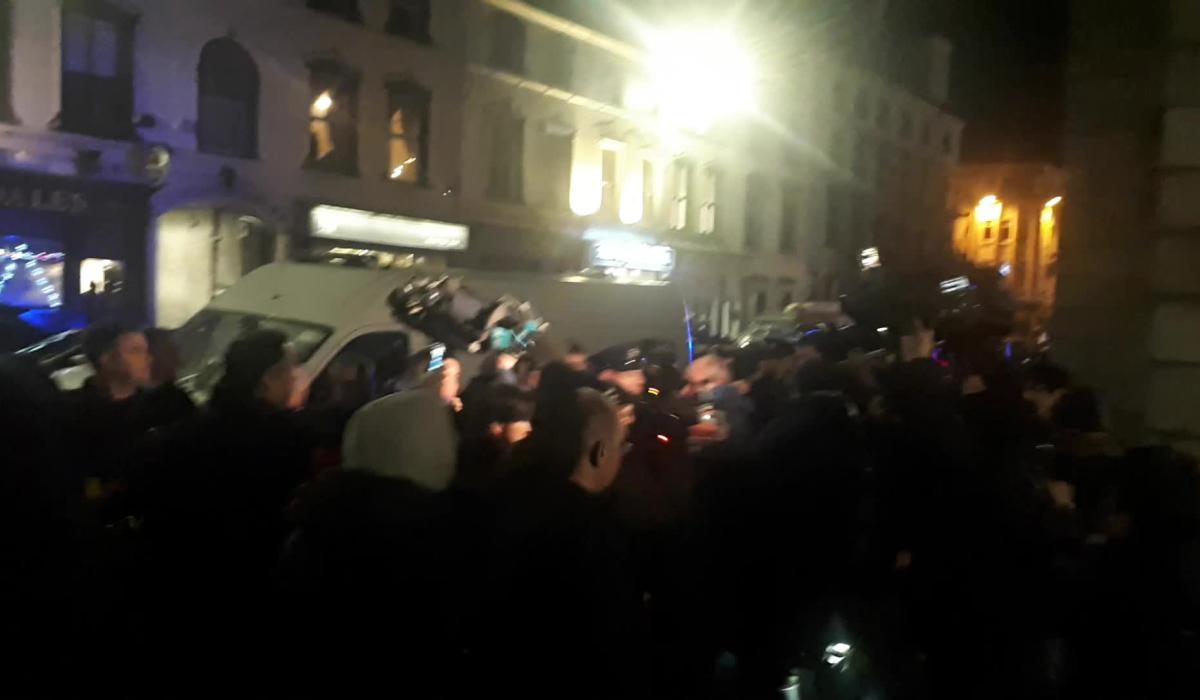 There were shouts and jeers as the suspect in the fatal stabbing of a Japanese man in Dundalk yesterday was led into the courthouse by gardai this evening.