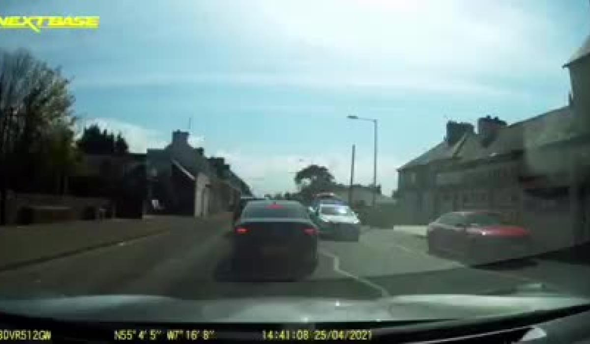 Dramatic footage has emerged on social media of the moment a speeding car rammed into a parked Garda vehicle in the Donegal village of Muff over the weekend.