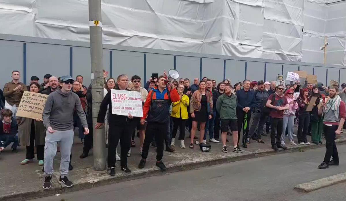 A protest against refugees being accommodated in the former orphanage at Seatown in Dundalk and a counter protest took place today.